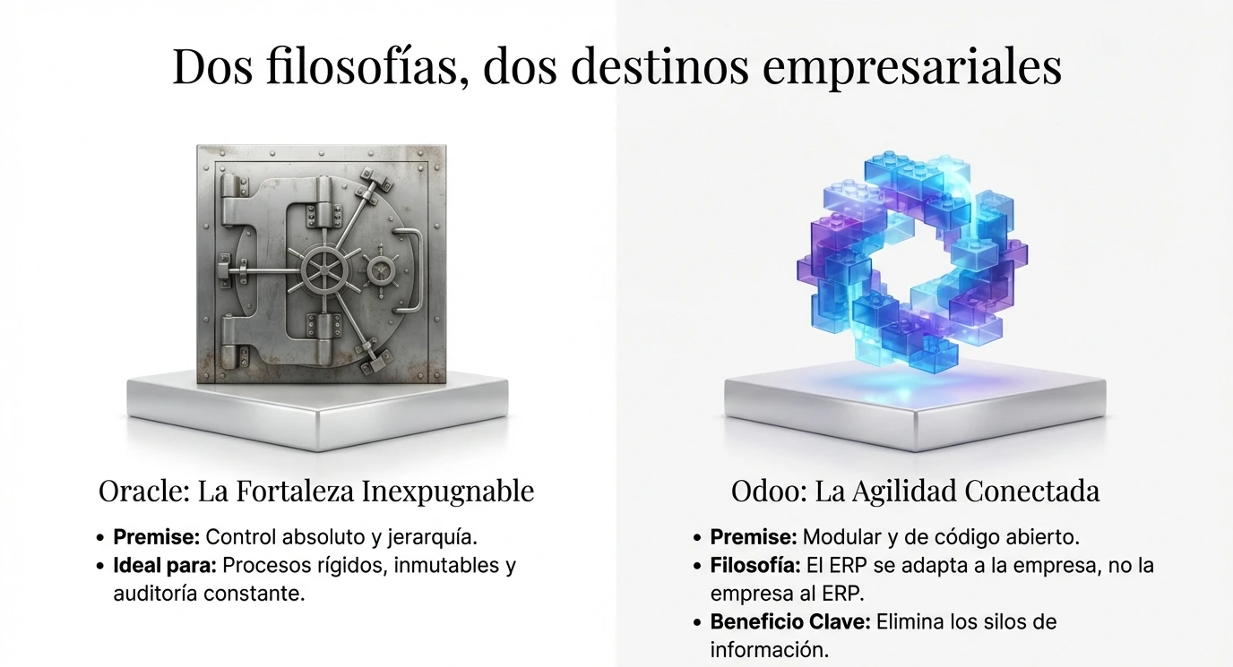 | Criterio | Odoo (El retador ágil) | Oracle (El estándar corporativo) |