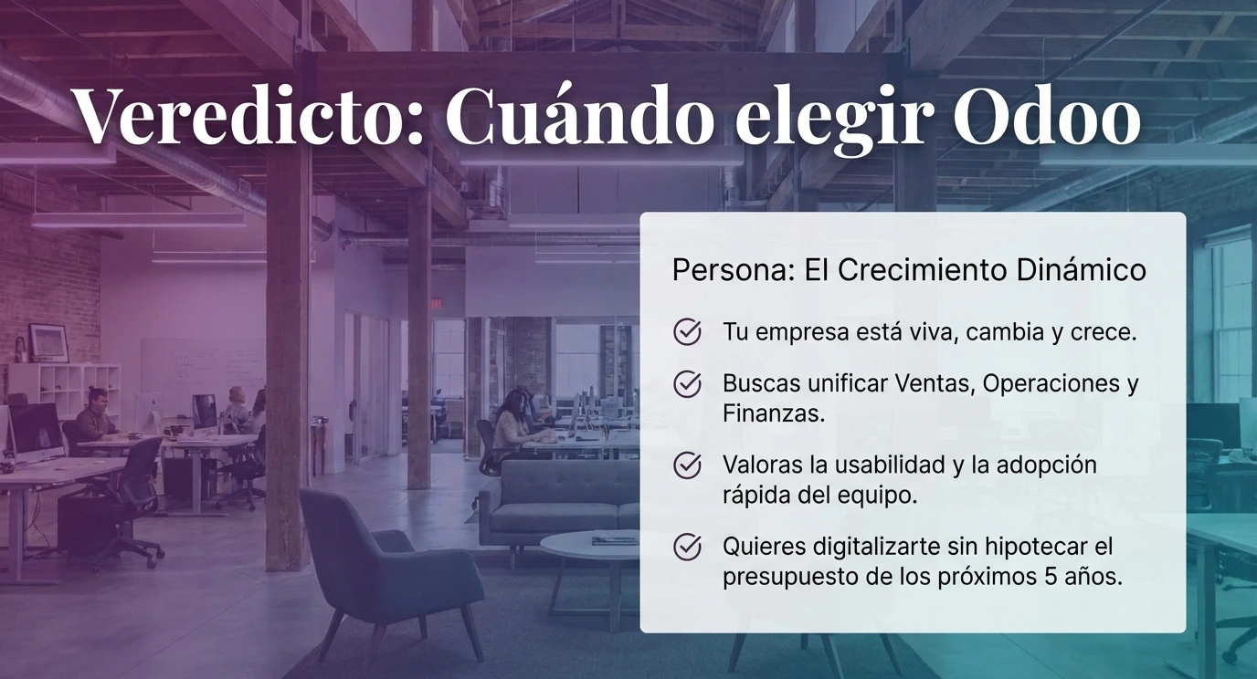 La factura de Oracle: No es solo la licencia. Es el servidor, el equipo interno de IT dedicado a mantenerlo, los consultores externos para cada cambio y el coste de oportunidad de una implantación larga. El ROI es a muy largo plazo.