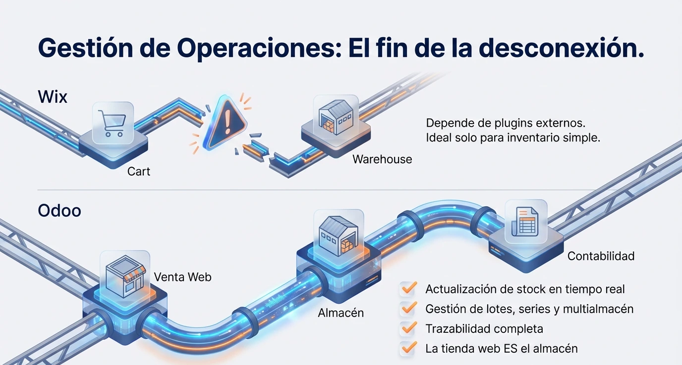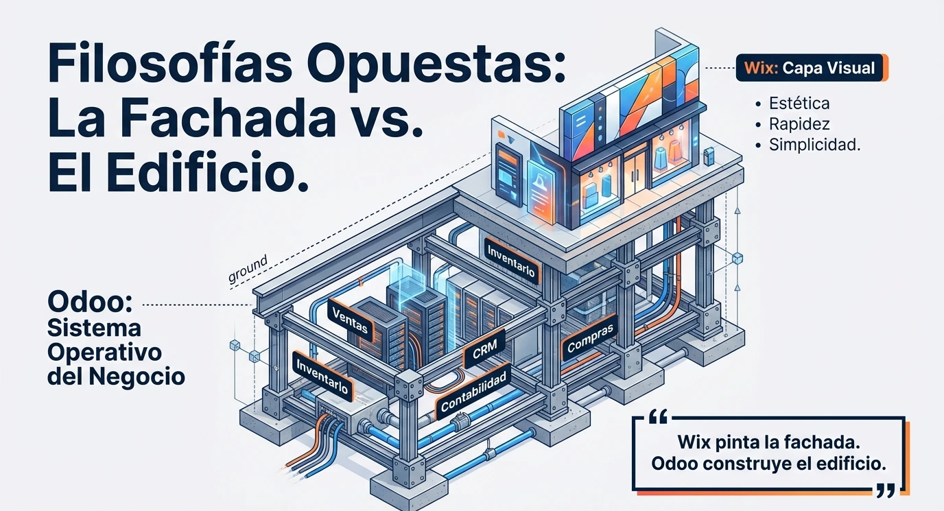 Si Wix es una capa frontal visual, Odoo es el sistema operativo del negocio.